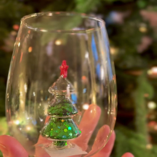 This adorable stemless glass features a tiny 3D Christmas tree inside—glittering green layers and a sweet red star on top. It’s the perfect festive touch for cider, cocktails, or anything in between.
