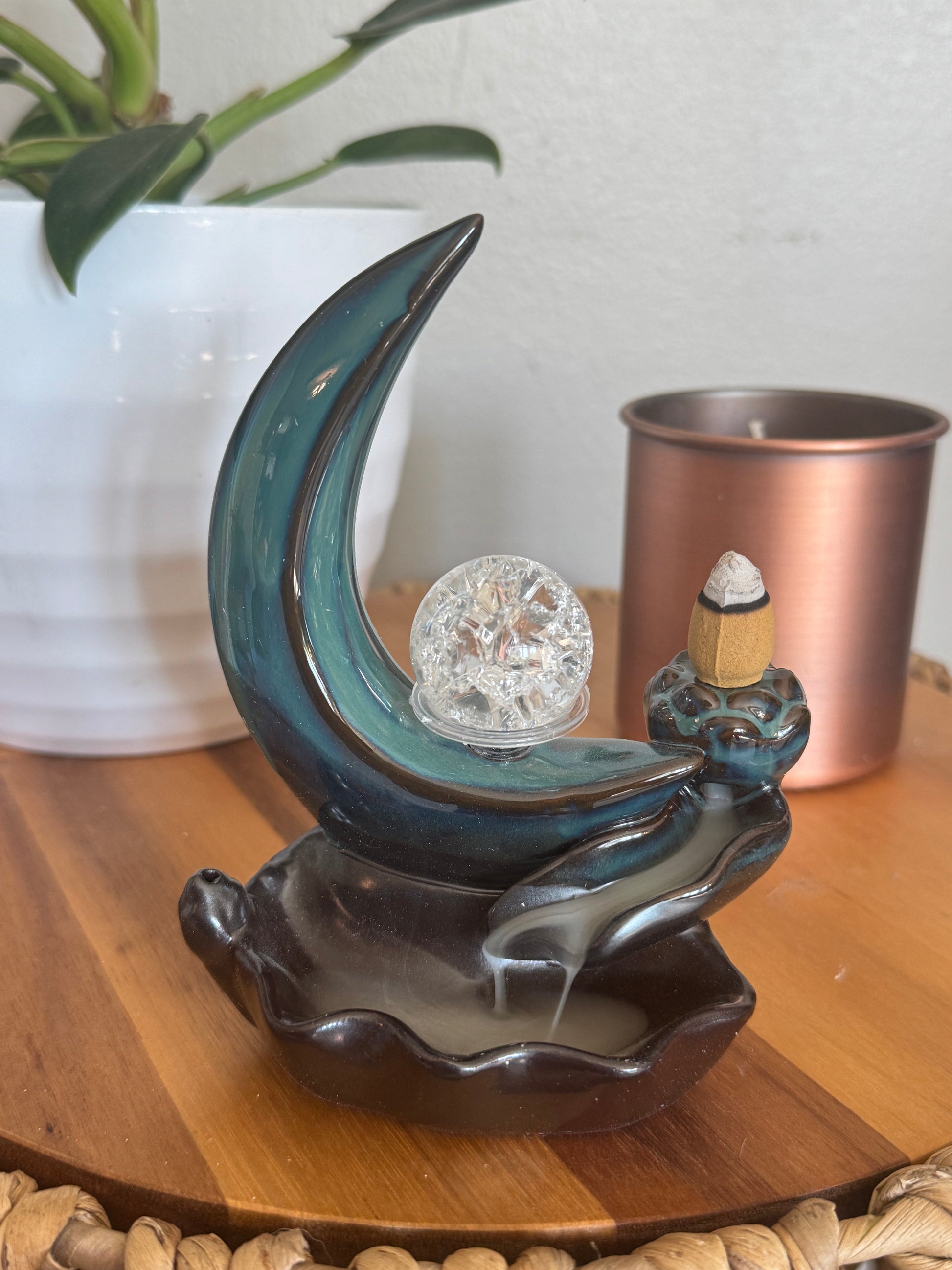 Crescent Moon Crystal Ball Backflow Incense Burner