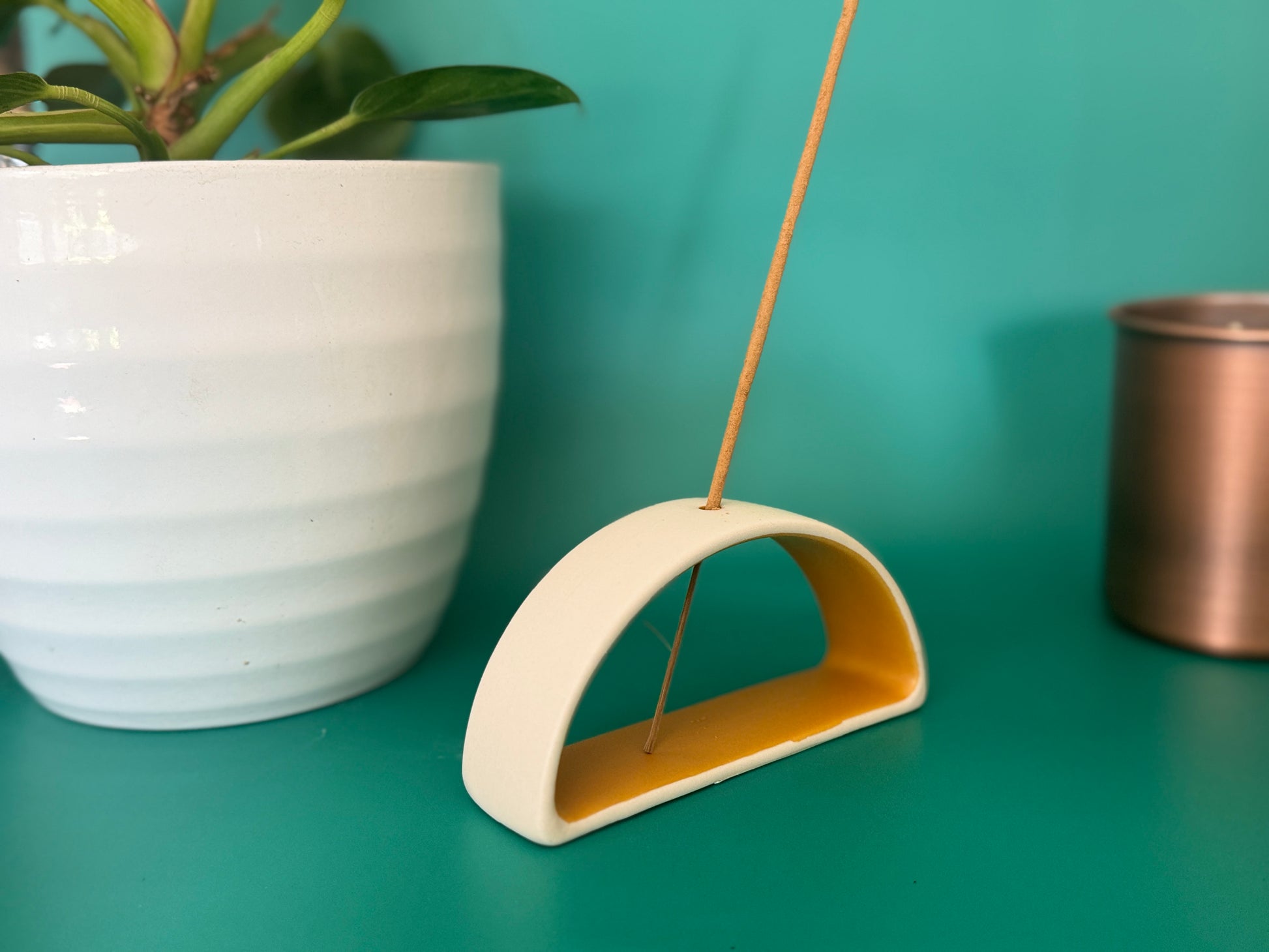 Elevate your space with our sleek Incense Holder. Crafted in white and yellow hues, this stylish accessory adds a touch of zen to any room.