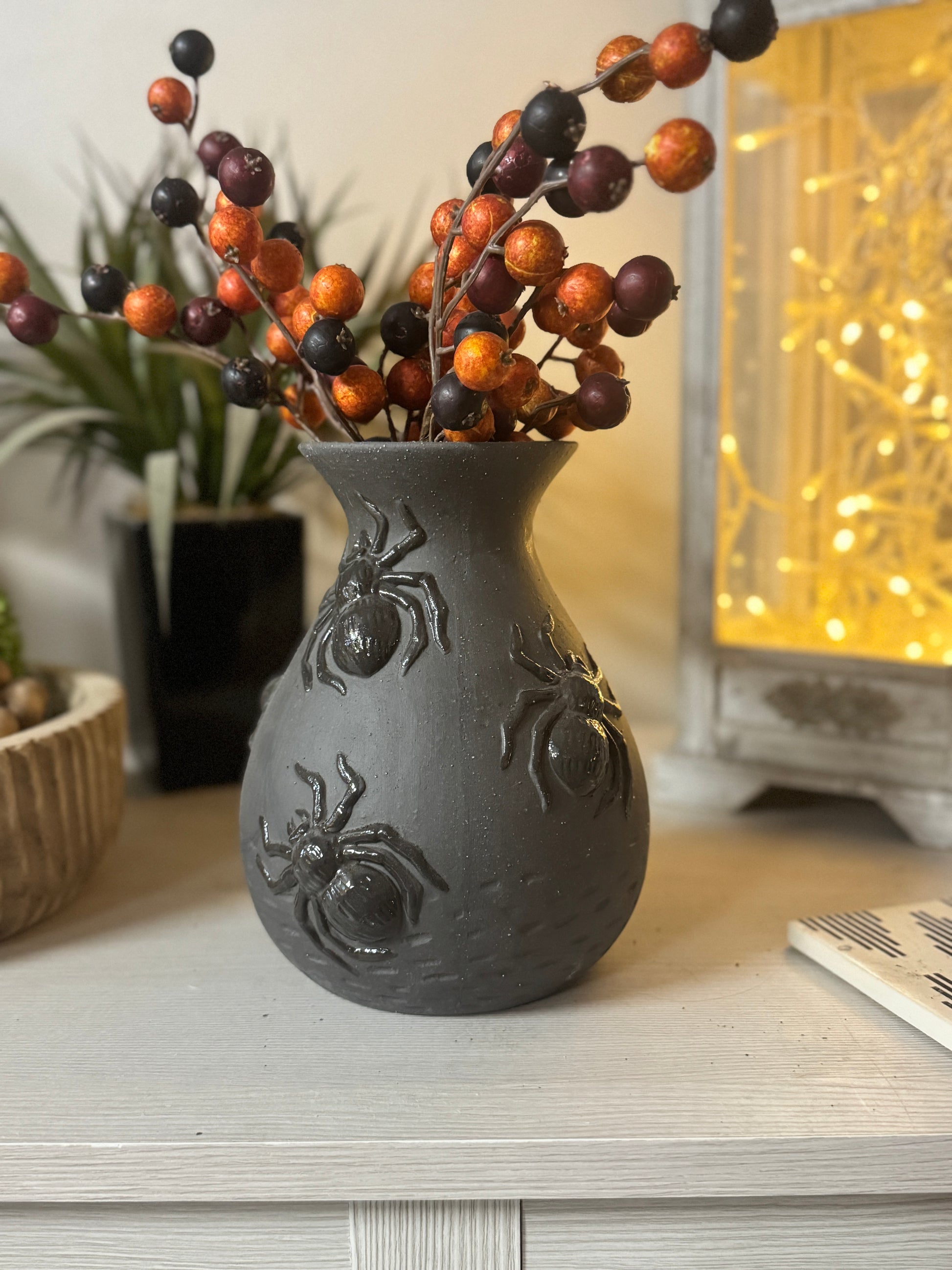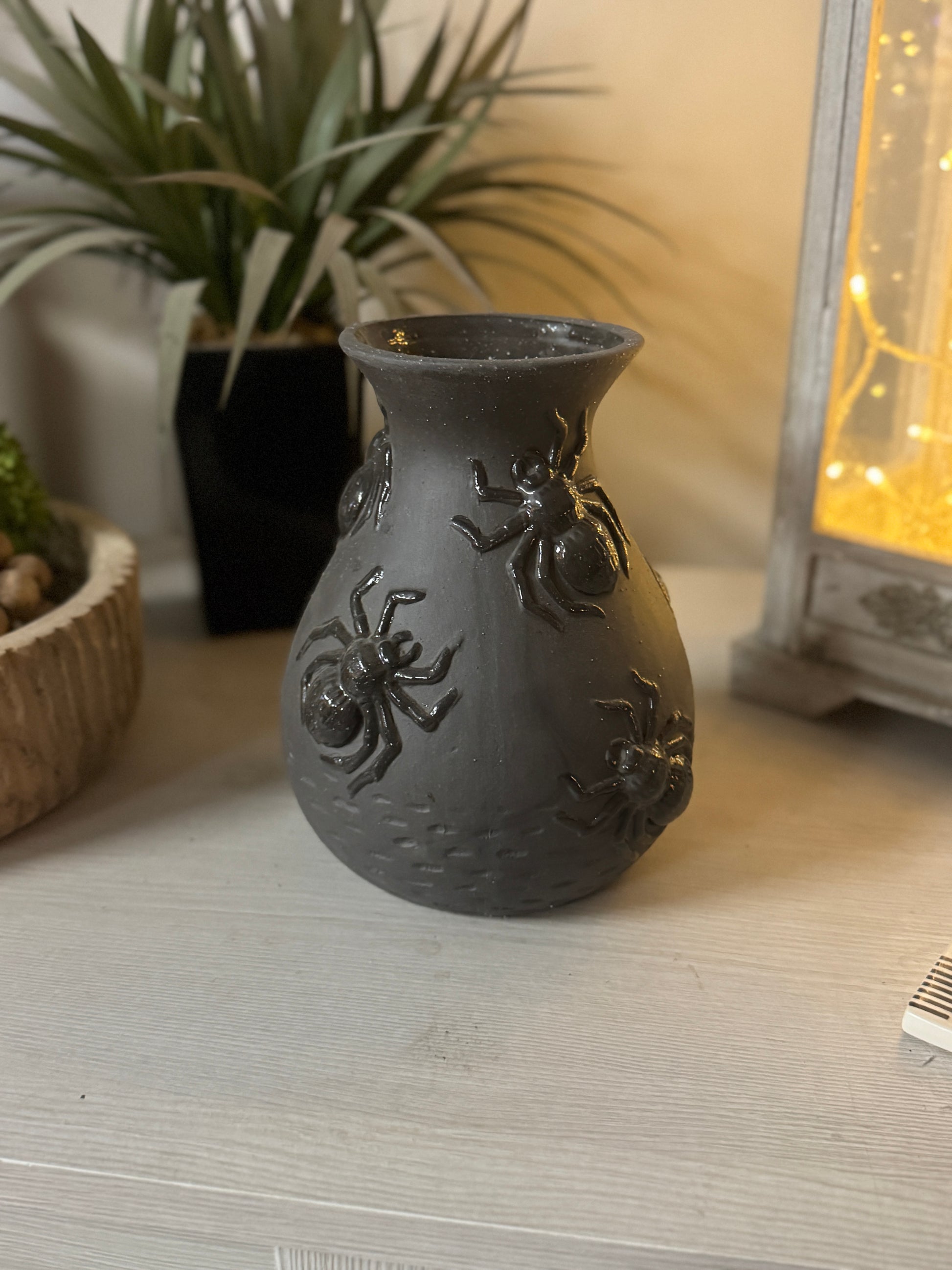 Add a touch of eerie elegance to your space with this handcrafted Spider Vase. Made from textured ceramic and finished in a moody matte charcoal glaze, this vase features raised spider detailing that’s equal parts spooky and stylish. Whether you’re decorating for Halloween or channeling gothic garden vibes year-round, this piece is sure to start conversations.