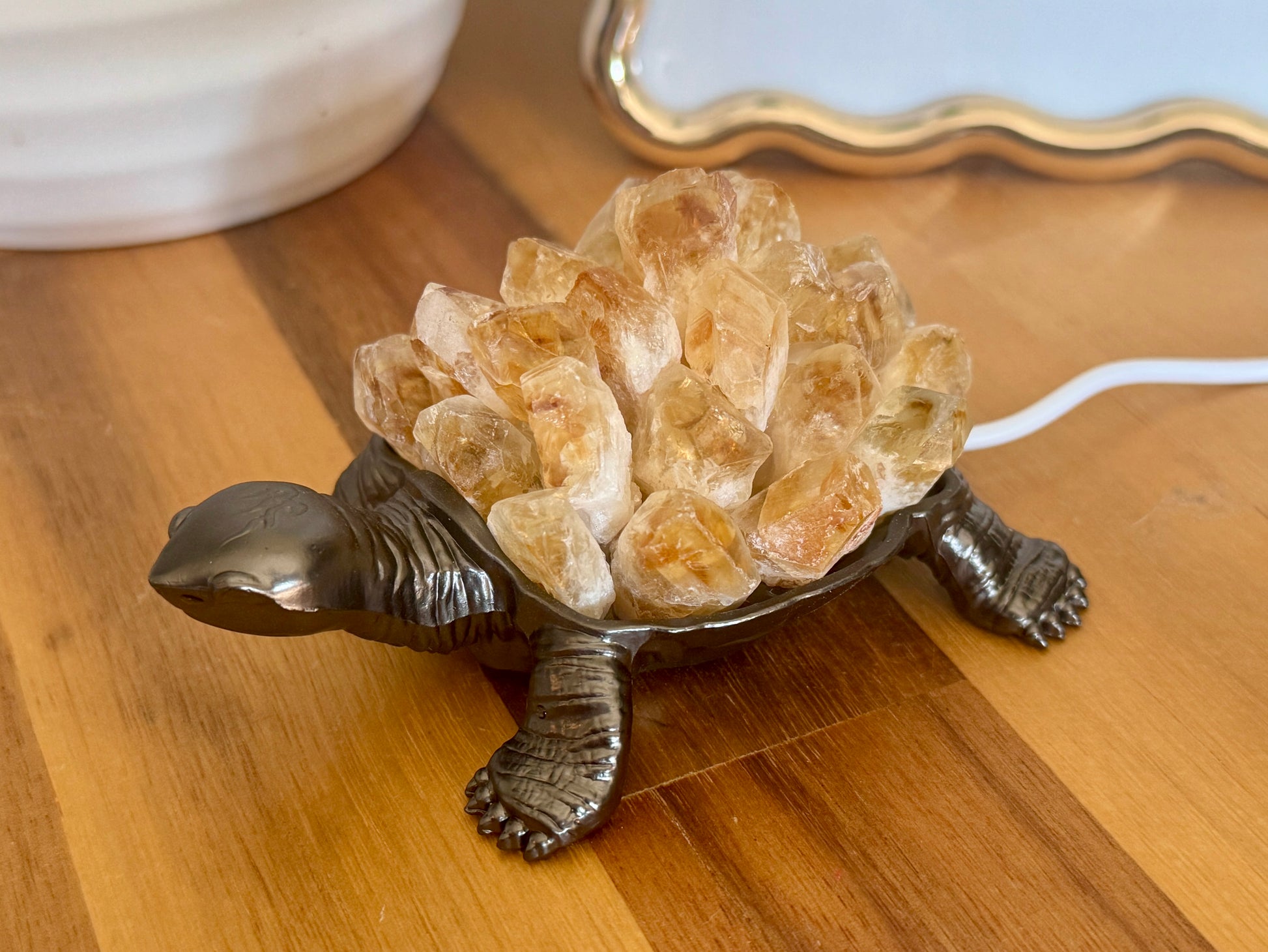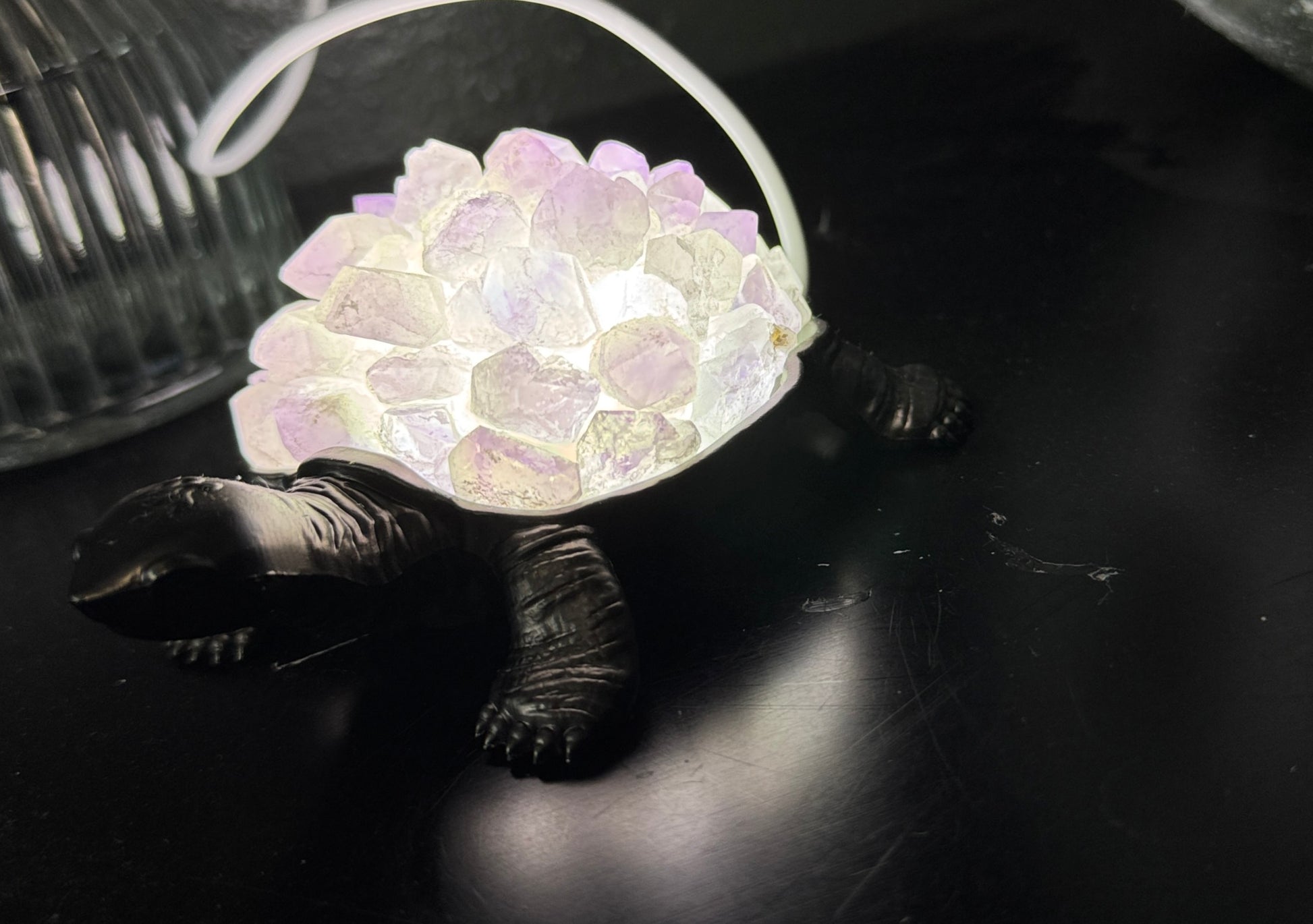 Symbolizing longevity, protection, and wisdom, this charming turtle brings meaning and calm to any space. The gemstone on its back promotes emotional healing and balance, while the soft LED glow adds a soothing ambiance—ideal as a gentle nightlight. Measuring 3” W x 4.5” L, it’s the perfect accent for bedside tables, kids’ rooms, or as a thoughtful gift.