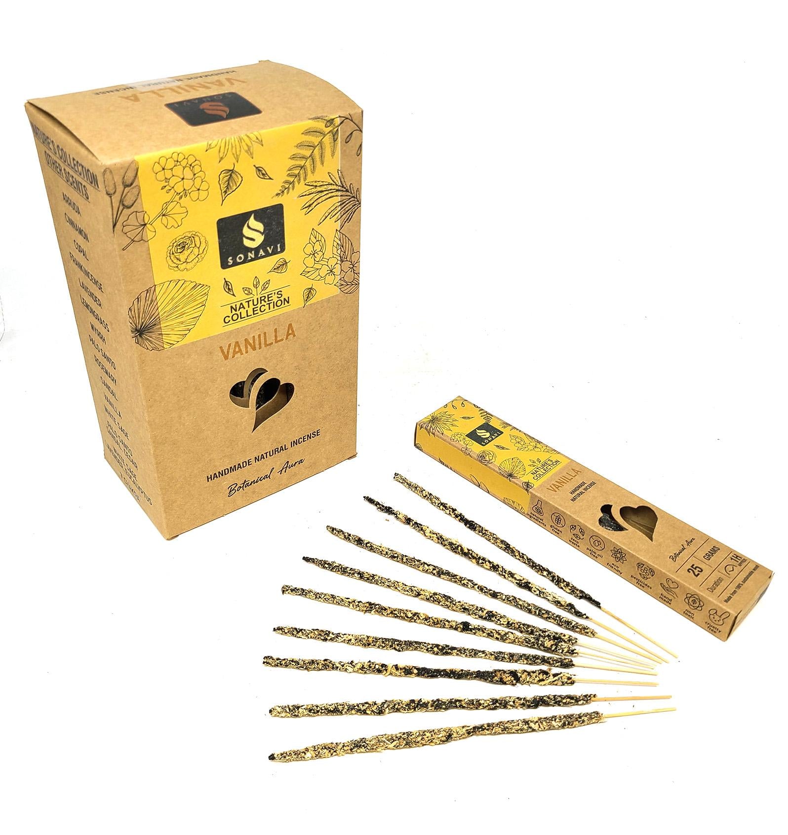 Indulge in the sweet, soothing aroma of SONAVI's Nature's Collection with All-Natural Vanilla Incense Sticks. Made from pure, chemical-free vanilla, these sticks are handmade to deliver a warm and comforting fragrance that enhances any space.
