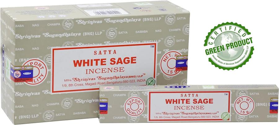 Experience the calming and purifying scent of White Sage Incense by Satya. Perfect for creating a peaceful atmosphere in your personal space.