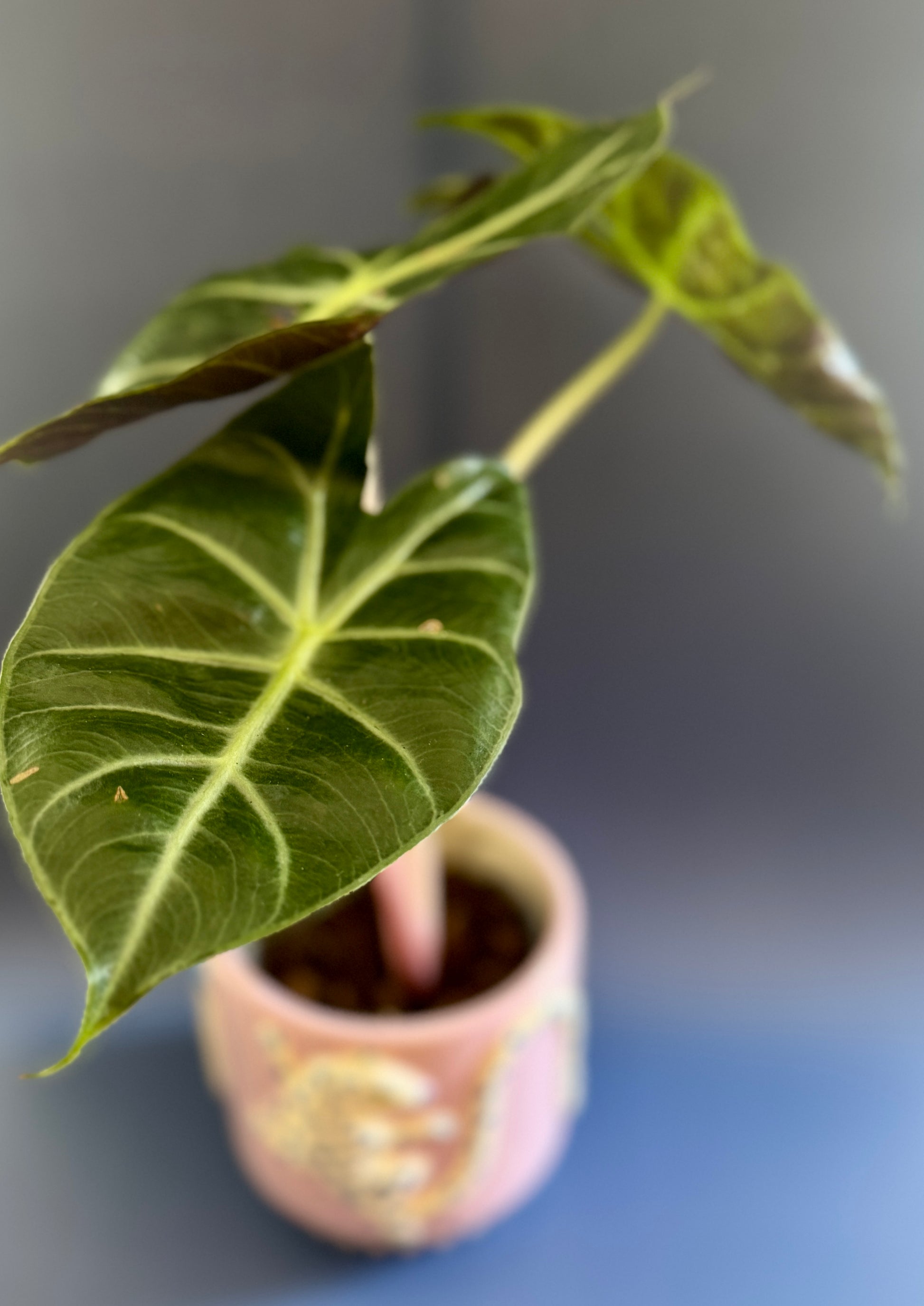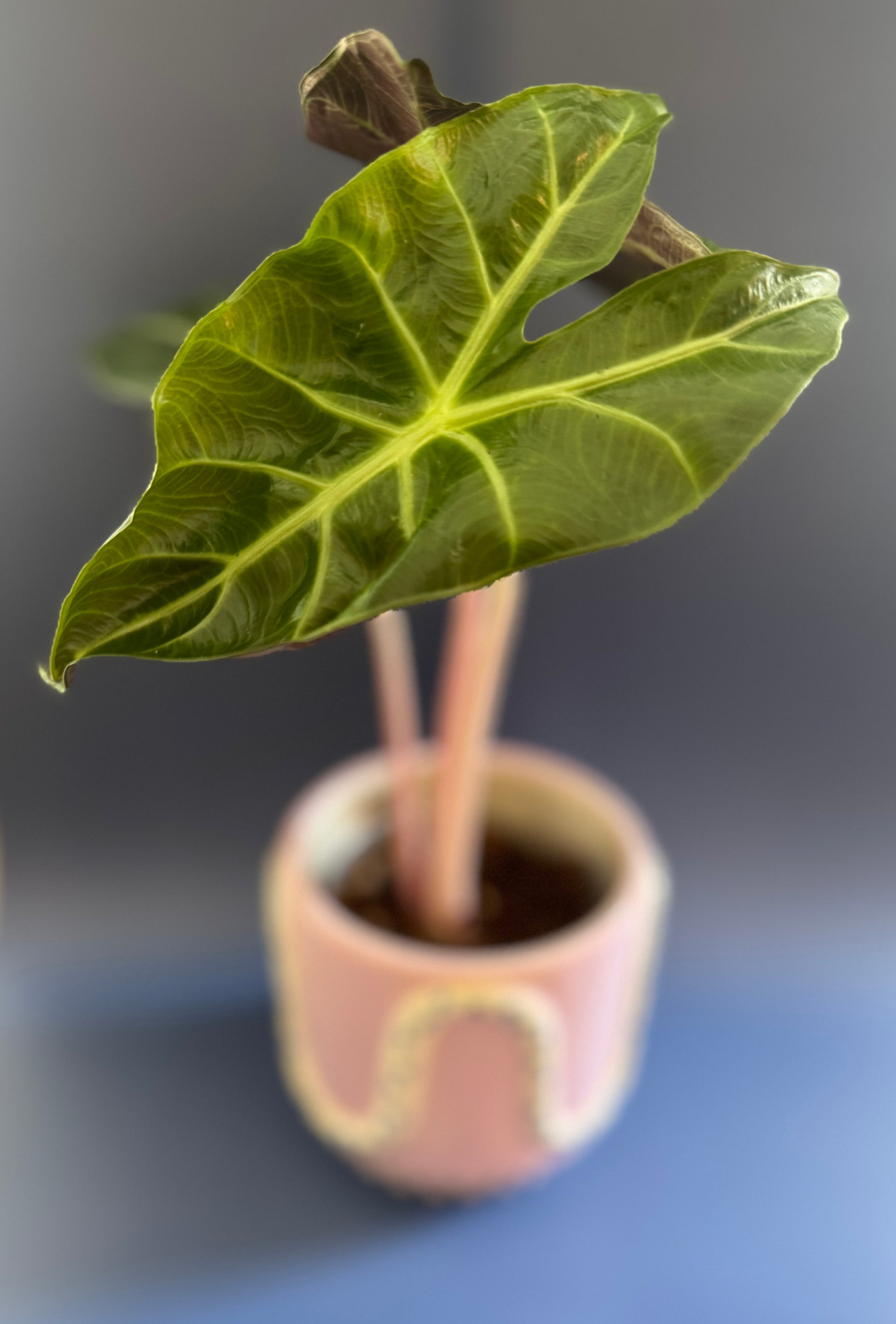 Wild Tails Leopard Pot with Alocasia Pink Dragon